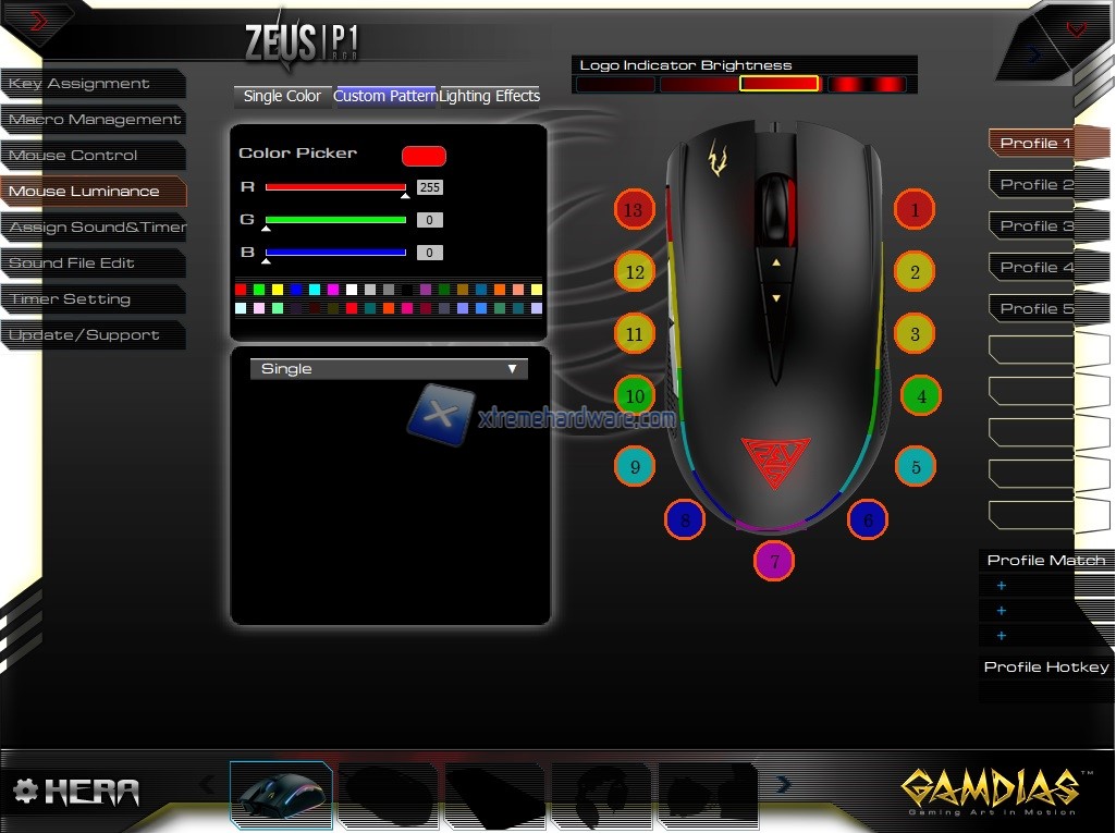 In ‘’Mouse Luminance’’ passeremo all’aspetto estetico e di personalizzazione dell’illuminazione a due zone del GAMDIAS ZEUS P1 RGB. Il logo GAMDIAS potrà essere illuminato solo di un singolo colore statico e relativo il Cycling dei DPI mentre le due ‘’strisce’’ perimetrali il mouse saranno personalizzabili con illuminazione RGB o a piacimento. Regolabile l’intensità di illuminazione e i due singoli effetti.