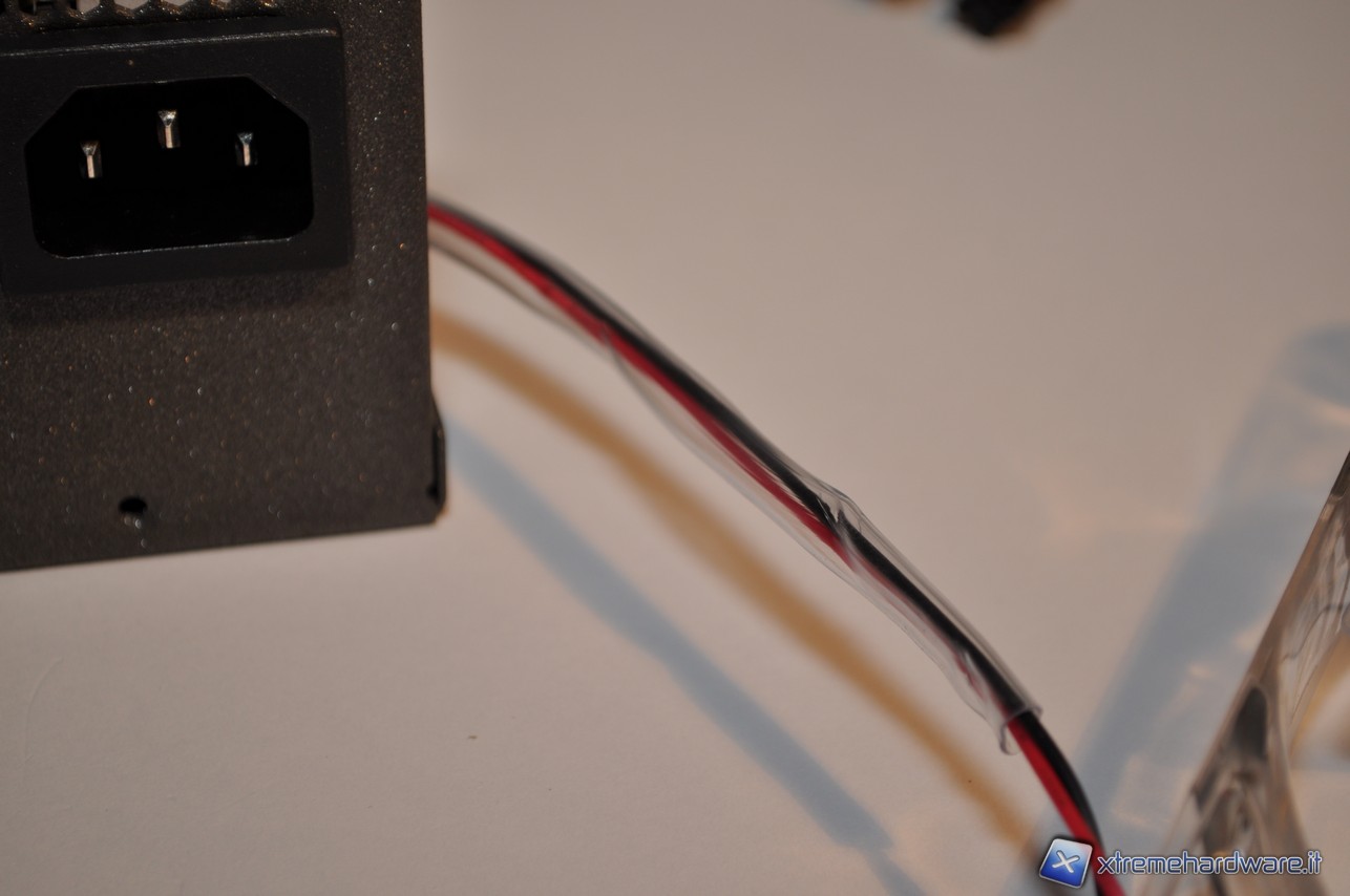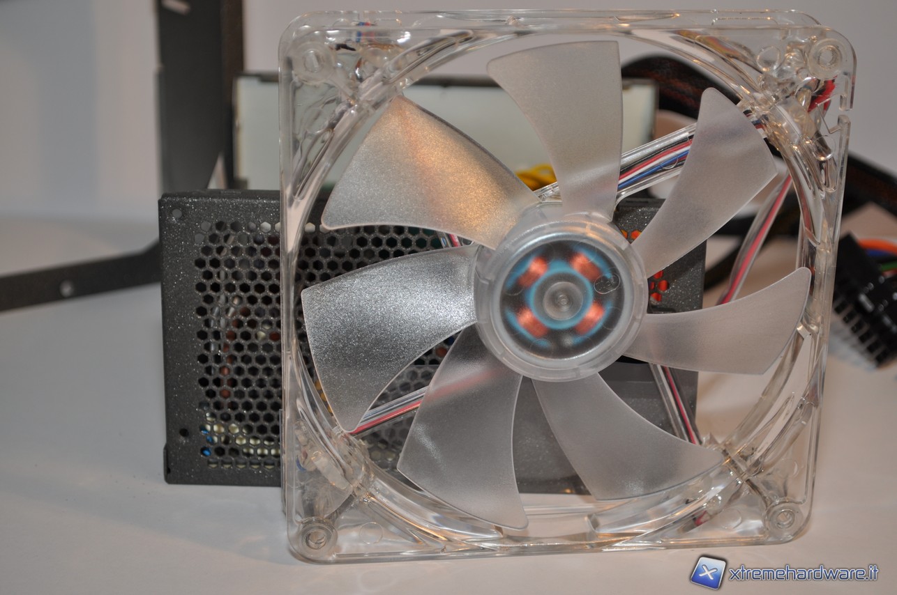 La ventola presente nell’HM-850 è una YaLn D14BH-12 operante con una tensione fino a 12V per un assorbimento massimo di 0.70A. È dotata di 3 led che cambiano colore in base al carico dell’alimentatore:
